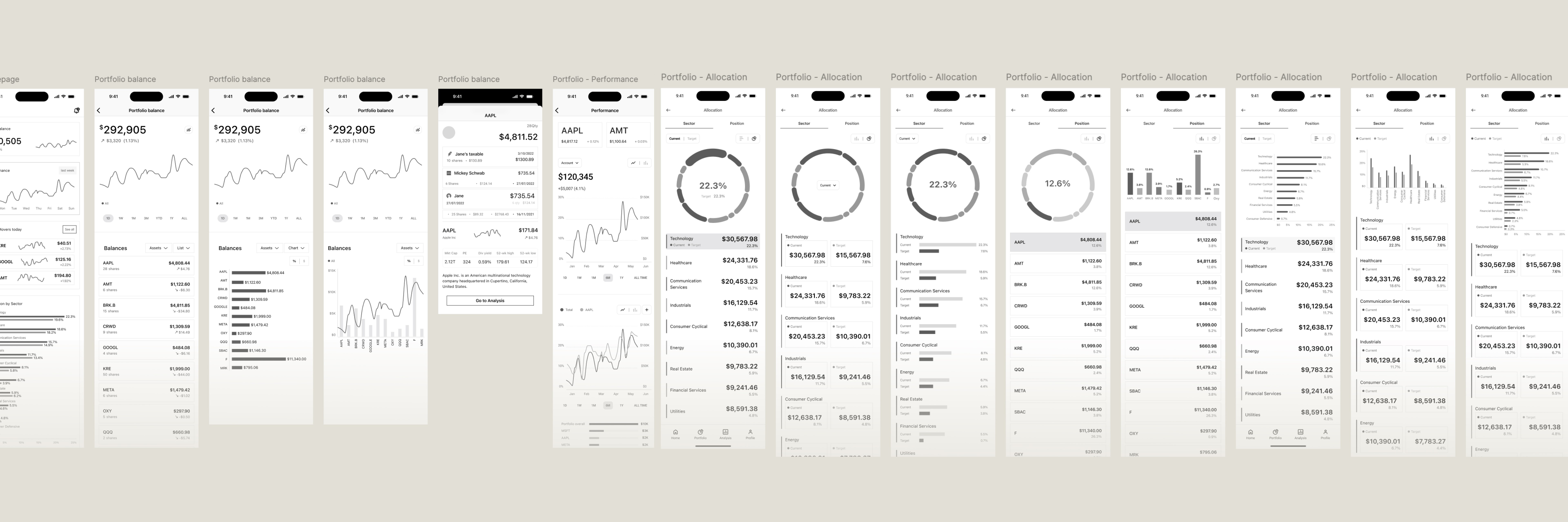 The team and I meticulously analyzed research insights to build the initial wireframes, ensuring an intuitive and scalable experience. My primary focus remained on refining the Portfolio feature while crafting multiple flows tailored to different target audiences (TAs), resulting in over 200 screens.